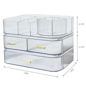 這一款化妝品收納是有分區設計的,讓你的每一個化妝品都有地方放置,採用的是加厚的材質,圓角的切割,不會劃傷,可以旋轉的設計,拿取更加的放心。